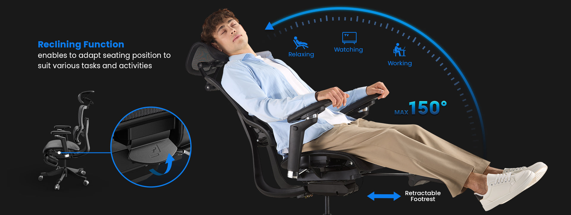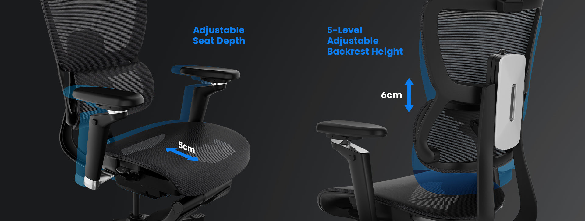 - Ultimate Adjustability: Customize your seating experience with a 150° reclining backrest, 5 cm seat depth adjustment, and 6 cm backrest height adjustment for personalized support.