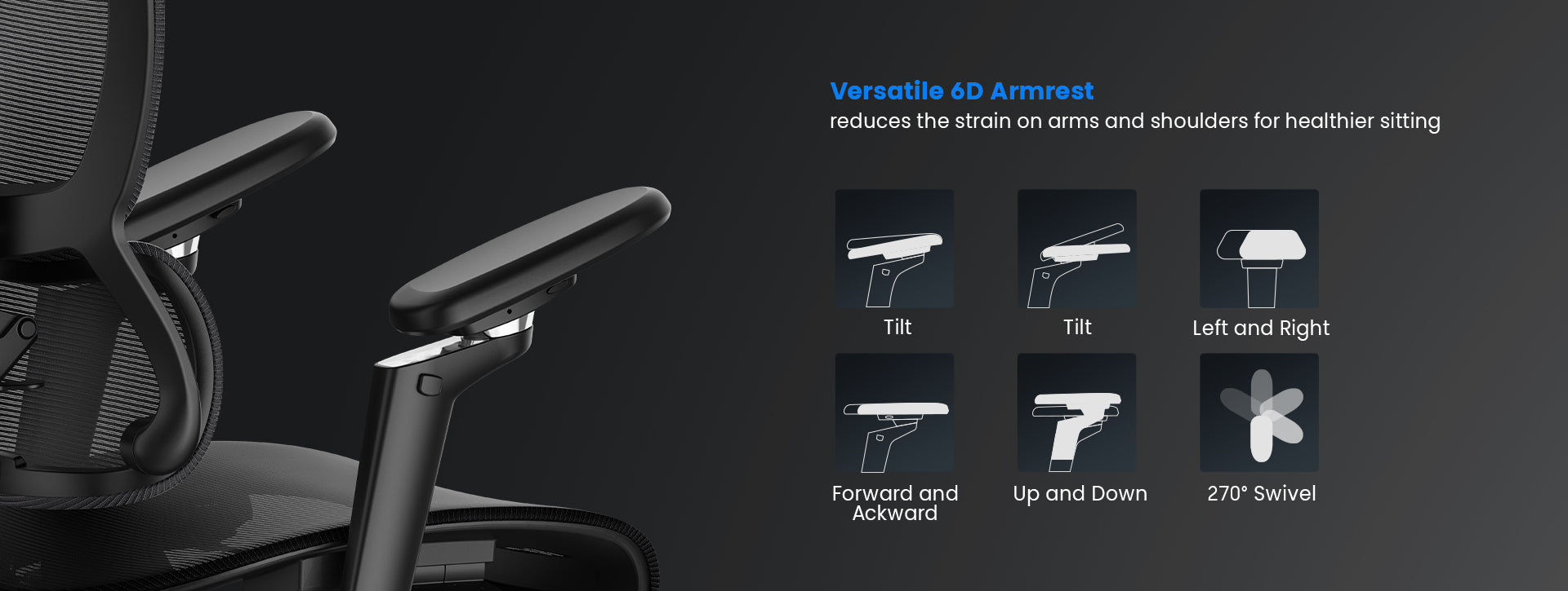 - All-Day Ergonomics: 6D armrests with 270° swivel give you full control over your arm positioning, while the 4D headrest adjusts for optimal neck support.
